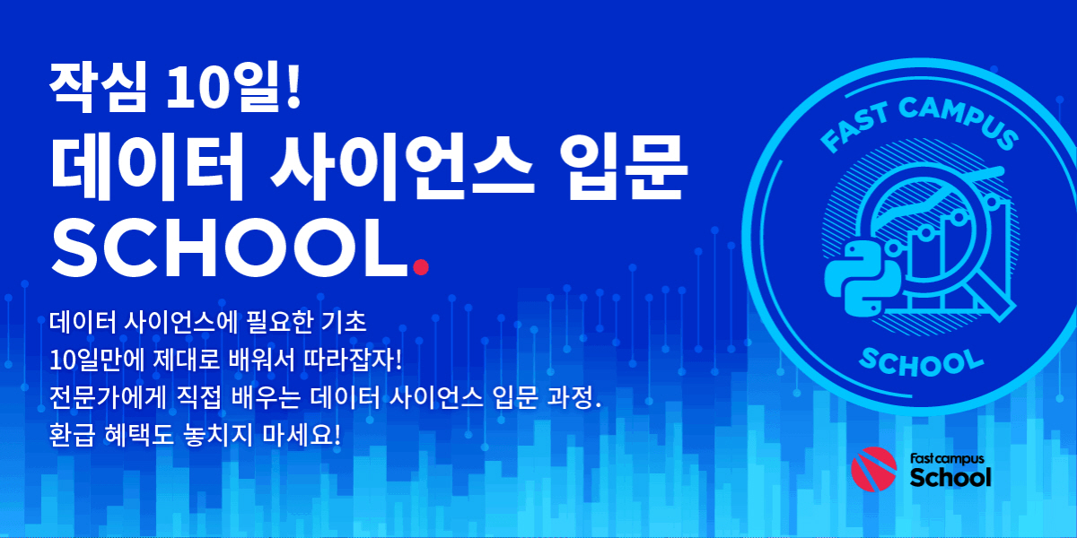 국내 성인실무교육 업체 패스트캠퍼스는 온라인 강의의 효율성과 오프라인 강의의 학습 효과를 모아 기획한 2주 코스의 '데이터 사이언스 정복 코스'를 오픈한다고 14일 밝혔다.