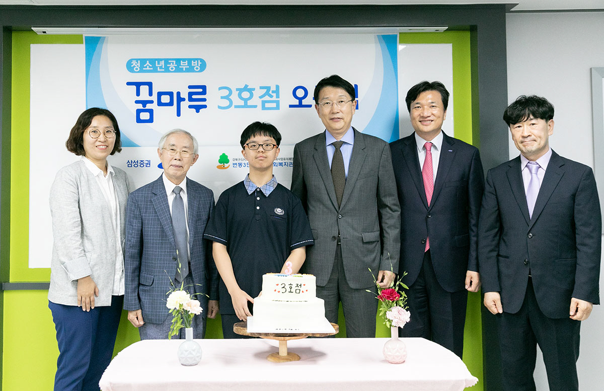 삼성증권은 21일 강북구 번동3단지 종합사회복지관에서 국제구호단체 기아대책과 함께 지역 청소년을 위한 공부방 '꿈마루' 3호점 오픈식을 진행했다고 밝혔다.