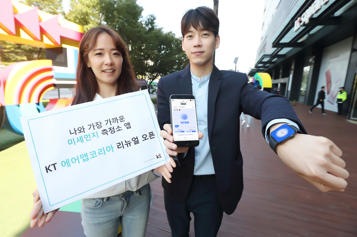 KT가 실시간 미세먼지 측정 애플리케이션인 에어맵코리아를 리뉴얼하고 이용자 편의성을 강화했다고 14일 밝혔다. 새롭게 리뉴얼된 에어코리아 앱에는 신규 콘텐츠도 추가됐다.