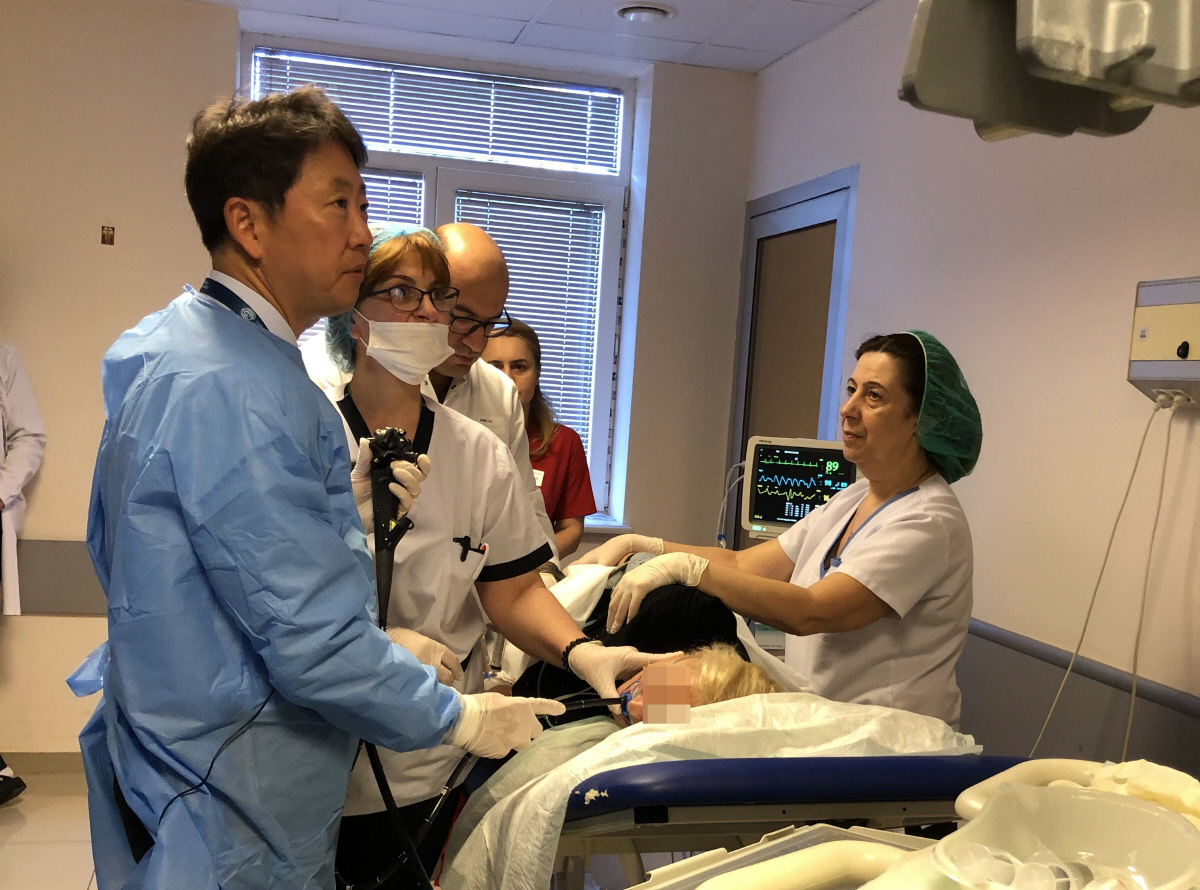유창범 교수는 조지아와 주변 국가에서 온 의사들을 대상으로 '위 내시경적 점막하 박리술의 기본 개념(BASIC CONCEPT OF GASTRIC ESD)'에 대해 강연하고, 치료 내시경 시술을 라이브로 시연했다.