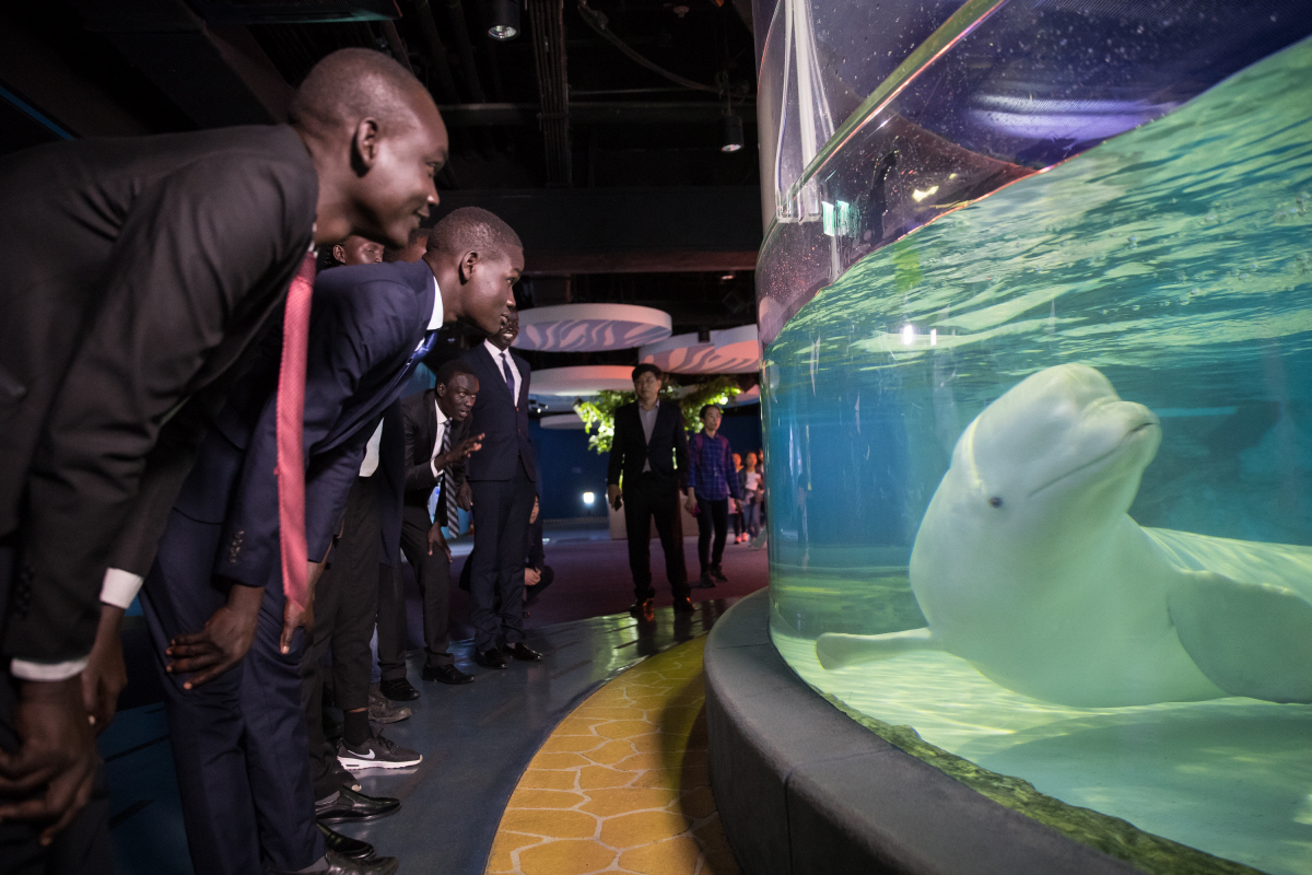 ◇10일 故이태석 신부의 제자와 (사)이태석사랑나눔 관계자들이 롯데월드타워 전망대 서울스카이와 롯데월드 아쿠아리움(대표 박동기)을 방문했다. 제자들은 첫 해외여행인 한국 방문 동안 이태석 신부 선종 10주기(내년 봄)에 개봉 예정인 후속 다큐멘터리 영화 촬영에도 동참한다.<사진=롯데월드 제공>