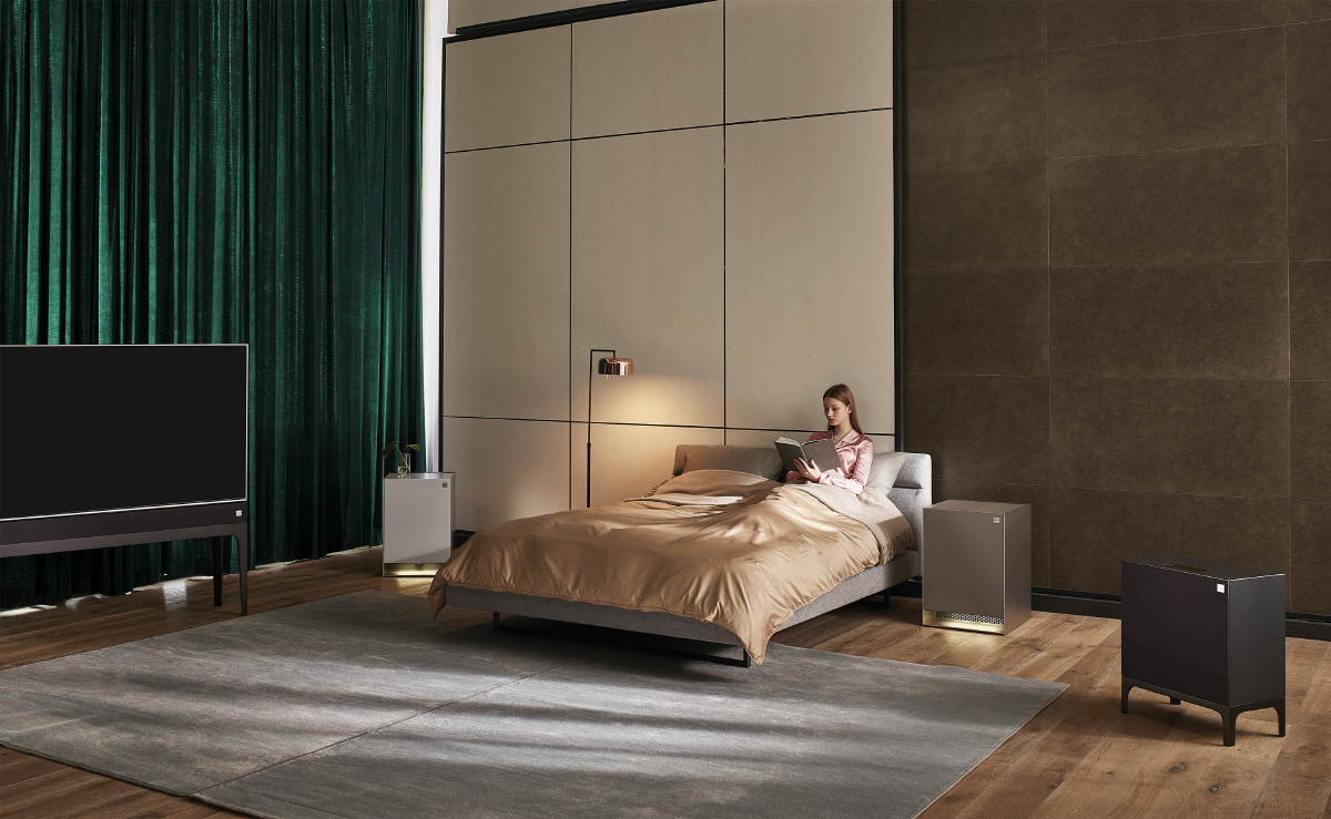 LG전자는 침실과 파우더룸이 하나로 결합된 나만의 복합공간도 연출했다. LG 오브제 가습 공기청정기가 침실 공기를 쾌적하게 관리하고 LG 오브제 냉장고는 음료뿐 아니라 마스크팩과 같은 화장품까지 보관한다. 두 제품의 고급 협탁 디자인은 공간과 조화를 이룬다.