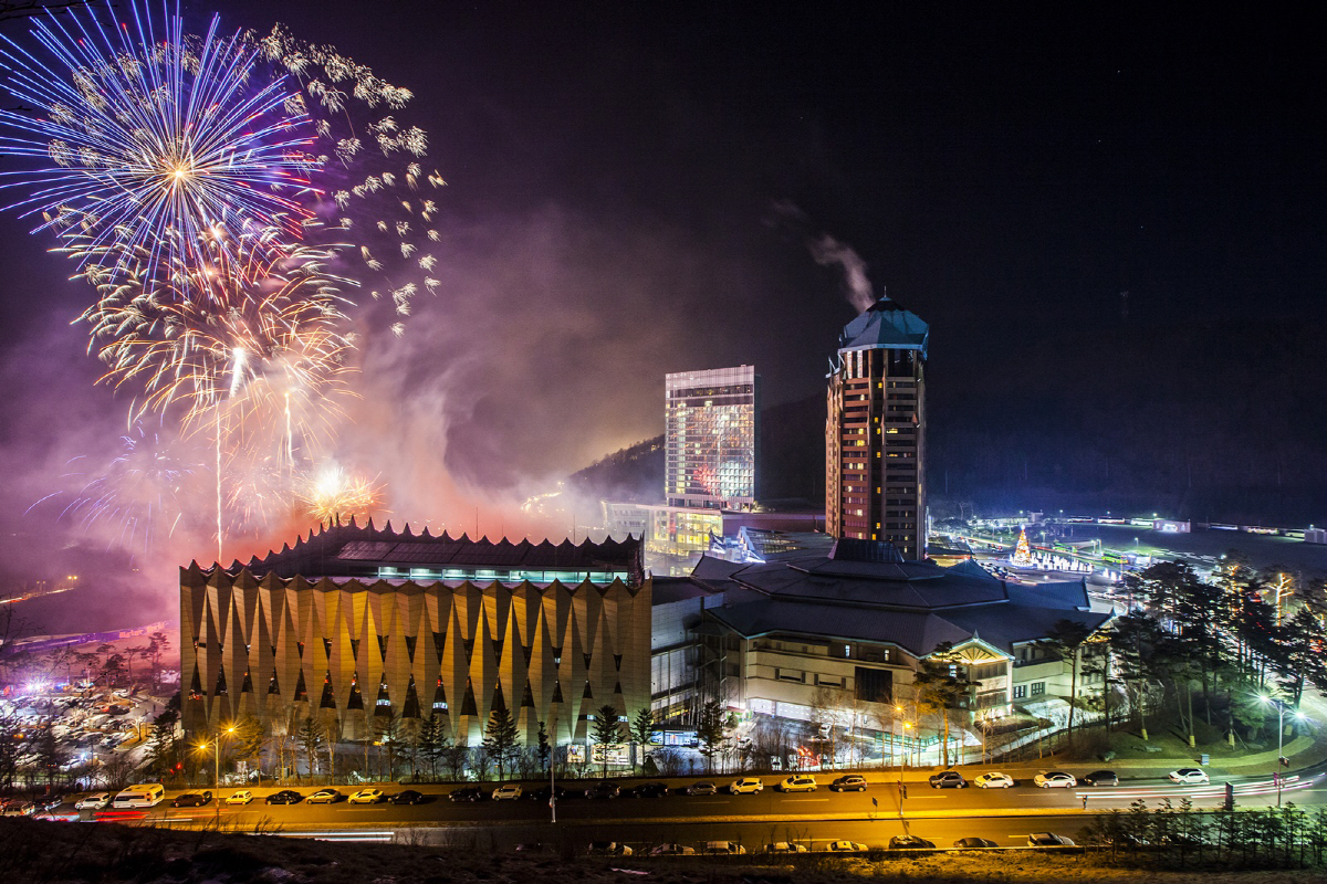 오후 9시, 하이원 그랜드호텔 앞에서는 불꽃쇼 이벤트가 이어진다. 10월 하순 하이원의 밤공기는 차갑다. 때문에 야간 이벤트 관람에는 두툼한 옷이 필수다.