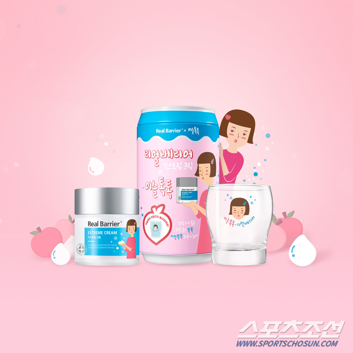 '이슬톡톡X리얼베리어 익스트림 크림 리미티드 에디션'은 이슬톡톡 캔 디자인의 틴 케이스에 50ml 본품과 특별히 한정 제작된 콜라보레이션 전용잔으로 구성했다. 본품 전면에 이슬톡톡'복순이'가 제품을 들고 있는 일러스트를 적용하는 등 복순이 캐릭터를 활용한 아기자기한 디자인으로 특별함을 더해 소장 욕구를 자극한다. 한정판 제품은 전국 1천개 올리브영 매장과 리얼베리어 공식 쇼핑몰 네오팜샵에서 판매될 예정이다.