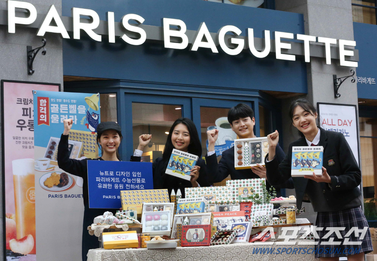 파리바게뜨는 5일(화) 서울 종로구 파리바게뜨 카페대학로점에서 2020 대학수학능력시험(이하 수능)을 앞두고 뉴트로(New+Retro) 감성의 패키지에 합격을 기원하는 응원 메시지를 담은 수능 선물을 소개하는 사진 행사를 가졌다.