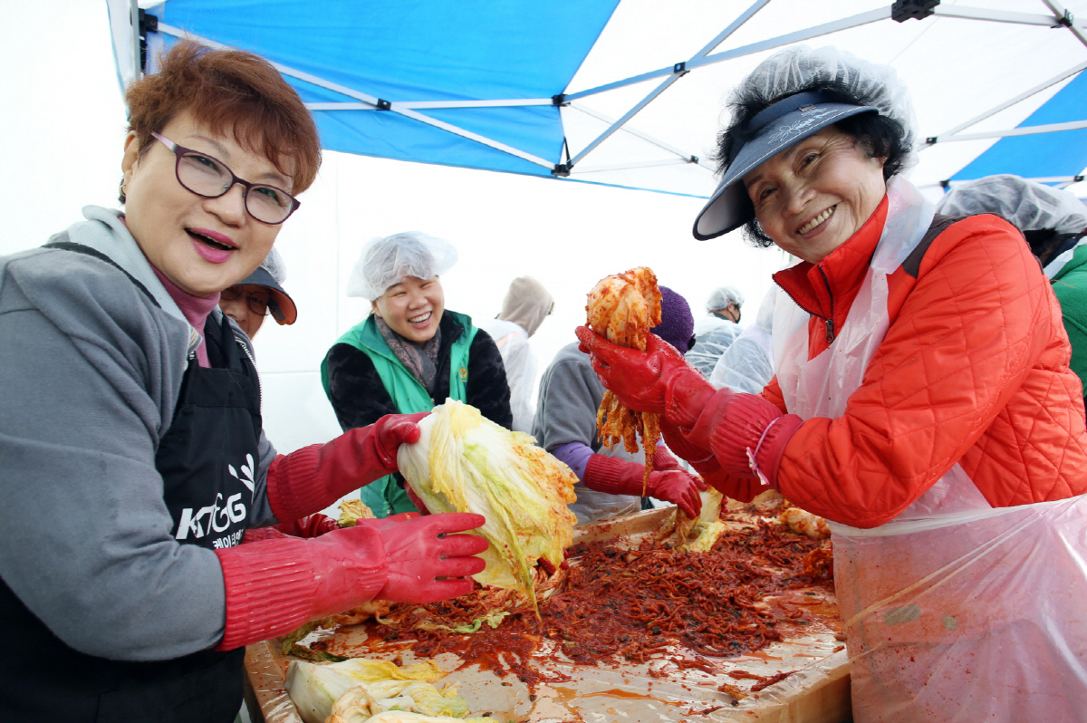KT&G에 따르면 지난 6일 신탄진 공장을 시작으로 연말까지 이어지는 봉사활동은 전국 각지에서 릴레이 방식으로 진행된다. 15일에는 KT&G 천안공장에서 KT&G 임직원과 천안시청 관계자들을 비롯해 천안시자원봉사센터 등 사회복지기관·시설·단체와 봉사자 300여 명이 참여한 가운데 김장 나눔 봉사를 진행했다. 경북 영주, 김천 등에 위치한 KT&G의 각 공장과 영업·원료·R&D 소속 9개 본부도 연말까지 서울, 제주, 경남, 강원 등 전국 각지에서 저소득 가정의 겨울나기에 필수적인 월동용품 전달에 나선다.