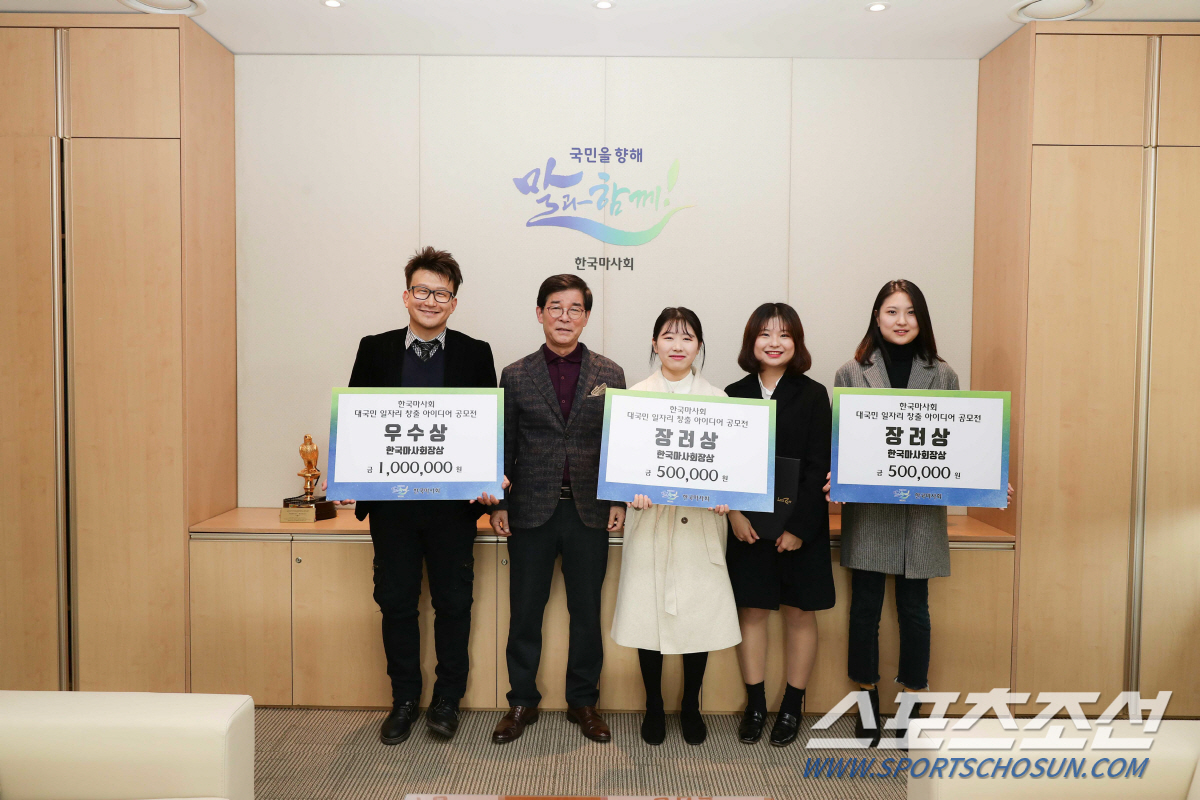 한국마사회가 지난 23일 한국마사회 본관에서 '일자리 창출 활성화를 위한 대국민 아이디어 공모전' 시상식을 가졌다. 우수상(1건)과 장려상(3건) 수상자가 참석했으며, 수상자들에게는 소정의 상금이 지급됐다.