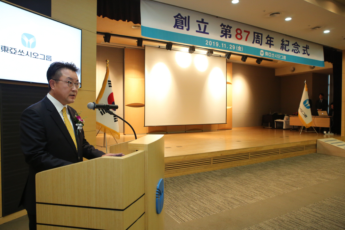 동아쏘시오그룹, 창립 87주년 기념식에서 한종현 동아쏘시오홀딩스 사장이 기념사를 말하고 있다.