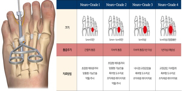 특히 최근 1cm 이상의 염증이 동반된 환자의 내시경 감암 및 제거술을 도입하여 중증 지간신경종 환자의 치료부담 개선에 성공했다.