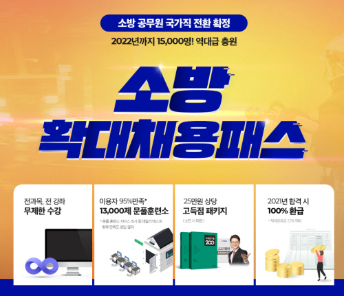 에듀윌이 2020년 소방공무원 수험생을 위해 마련한 '소방 확대채용패스'에 대한 자세한 사항은 에듀윌 공식 홈페이지에서 확인할 수 있다.