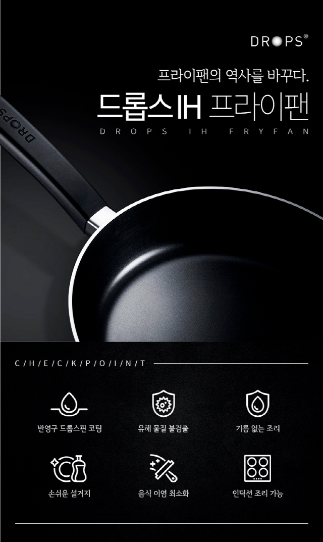 건강한 프라이팬이라 불리는 드롭스 제품은 '제로핀홀'로 유리표면처럼 매끈하며, 표면 기공이 제로(zero)에 가깝다. 이에 기공 사이에 음식 잔여물 및 산폐유가 남지 않아, 건강한 요리를 할 수 있다. 또한, 요리 후에도 쉽고 편하게 세척이 가능하고 끈적임 없이 새것처럼 사용할 수 있다. 세척 후에 표면을 만져보면 뽀드득 소리가 날 정도로 깨끗이 세척된다고 하여 일명 '뽀드득팬'으로 불리고 있기도 하다.