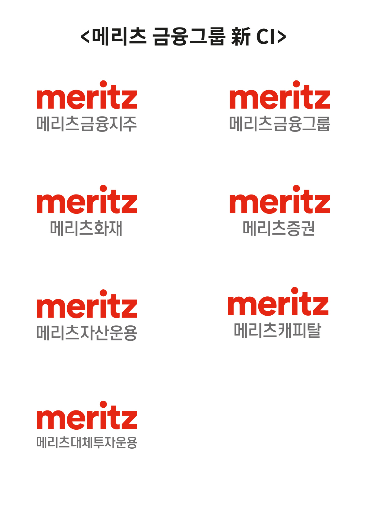 새 CI는 고객에게 풍부한 혜택을 준다는 뜻을 담은 '메리츠'라는 기존 사명의 의미에 집중하면서, 메리츠의 열정과 에너지, 자신감, 사랑을 상징하는 컬러 '오렌지레드'를 새롭게 적용했다. 또 영문 소문자를 사용함으로써 고객 지향적이고 미래 지향적인 메리츠를 보다 친근하고 젊은 이미지로 표현했다.