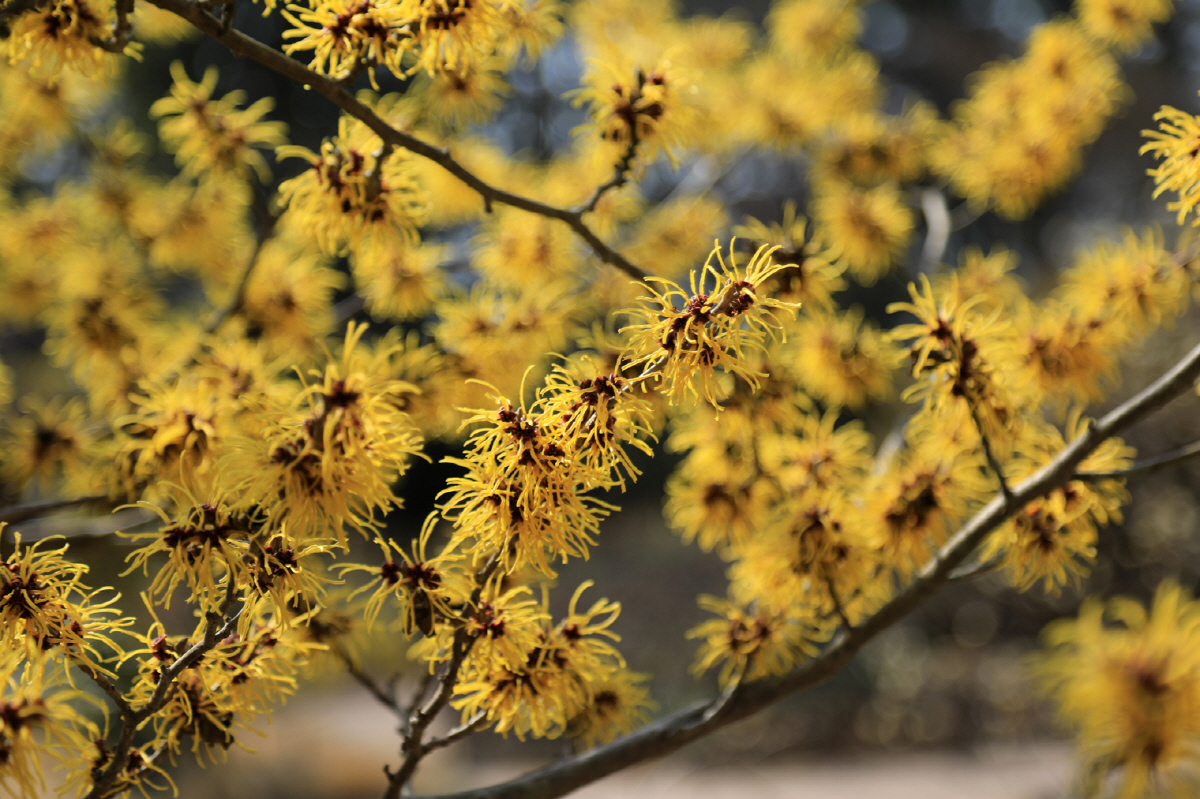 풍년화는 낙엽관목으로 겨우내 꽃눈을 품고 있다가 잎이 채 나기도 전에 서둘러 꽃망울을 터뜨린다. 땅이 촉촉하면 더 많은 꽃을 피우는 풍년화를 보며 그해 풍년을 가늠했다고 하여 '풍년화'라는 이름을 얻었다.