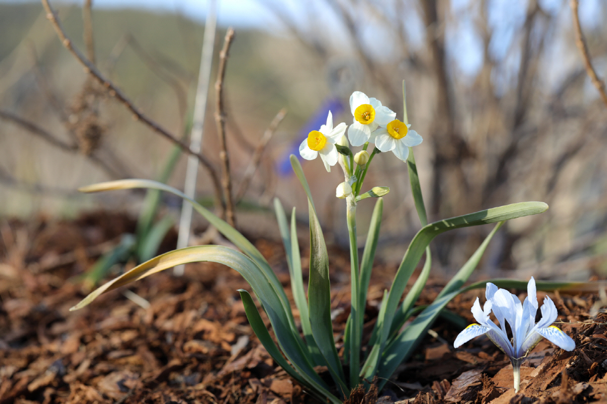 요즘에는 풍년화며, 노란 수선화, 매화, 쪽빛 붓꽃, 버들강아지, 삼지닥나무, 영춘화, 크로커스 등 다양한 봄꽃이 만발했다. 특히 가늘고 연노란 꽃잎이 특징인 풍년화와 고혹한 향훈을 발산하는 매화의 기품이 압권이다.