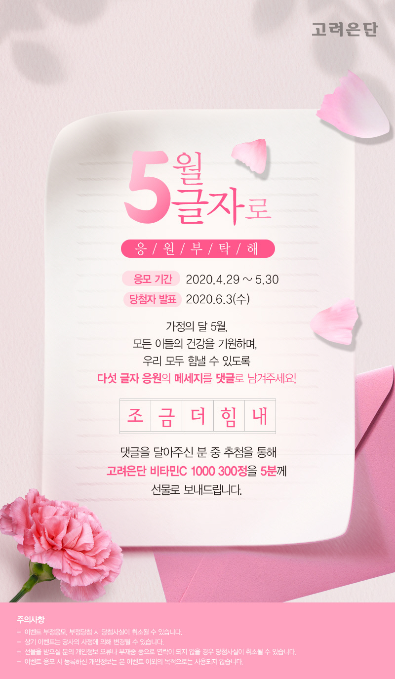 고려은단이 5월 가정의 달을 맞아 응원 메시지를 공유하는 '5월 5글자로 응원 부탁해!' 이벤트를 진행한다.
