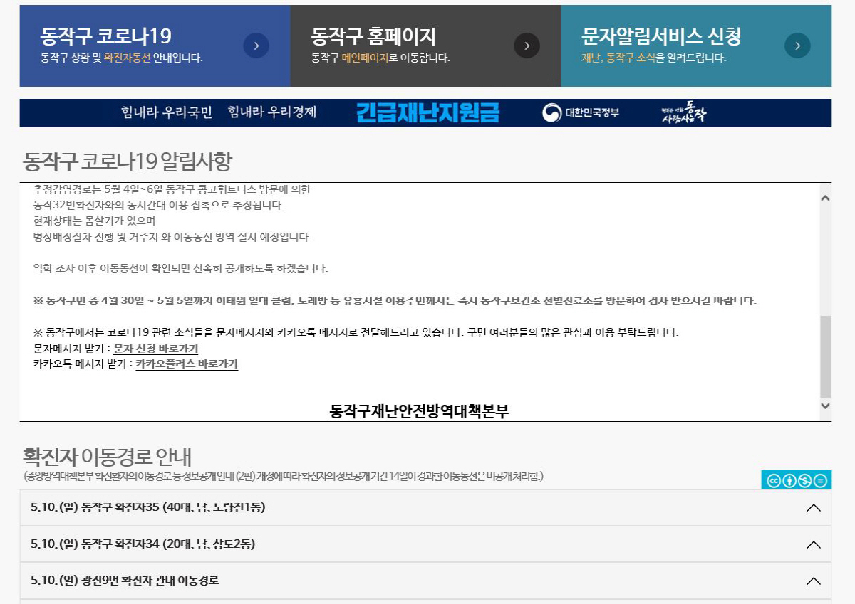 서울시 동작구청이 11일 이태원 클럽과 관련된 34번과 35번 코로나19 확진자 2명의 동선을 공개했다.