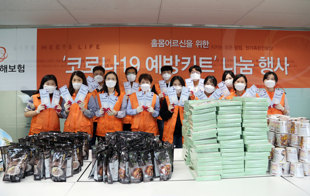 한화손해보험은 지난 15일 서울 여의도 사옥에서 독거노인종합지원센터와 함께 '홀몸 어르신을 위한 코로나 19 예방키트' 제작 봉사활동을 진행했다고 밝혔다.