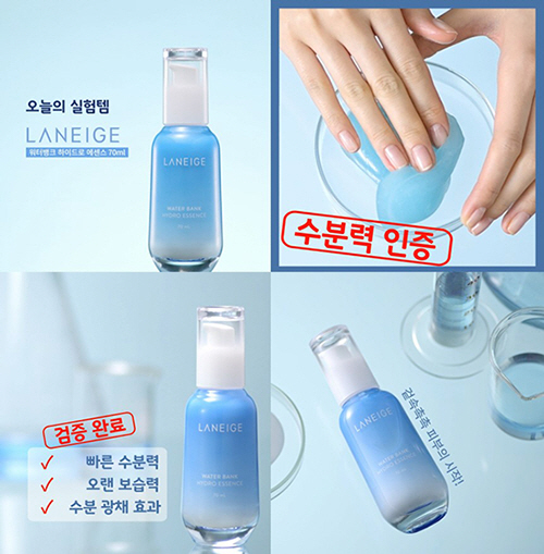 라네즈의 수분에센스 '워터뱅크 에센스'는 하이드로-라이트닝(Hydro-Lightening™) 기술을 담아 피부 속 수분 집중 공급, 피부장벽강화 및 수분진정, 피부 윤기 개선 등을 통해 맑게 빛나는 수분 광채 피부를 만들어 준다.