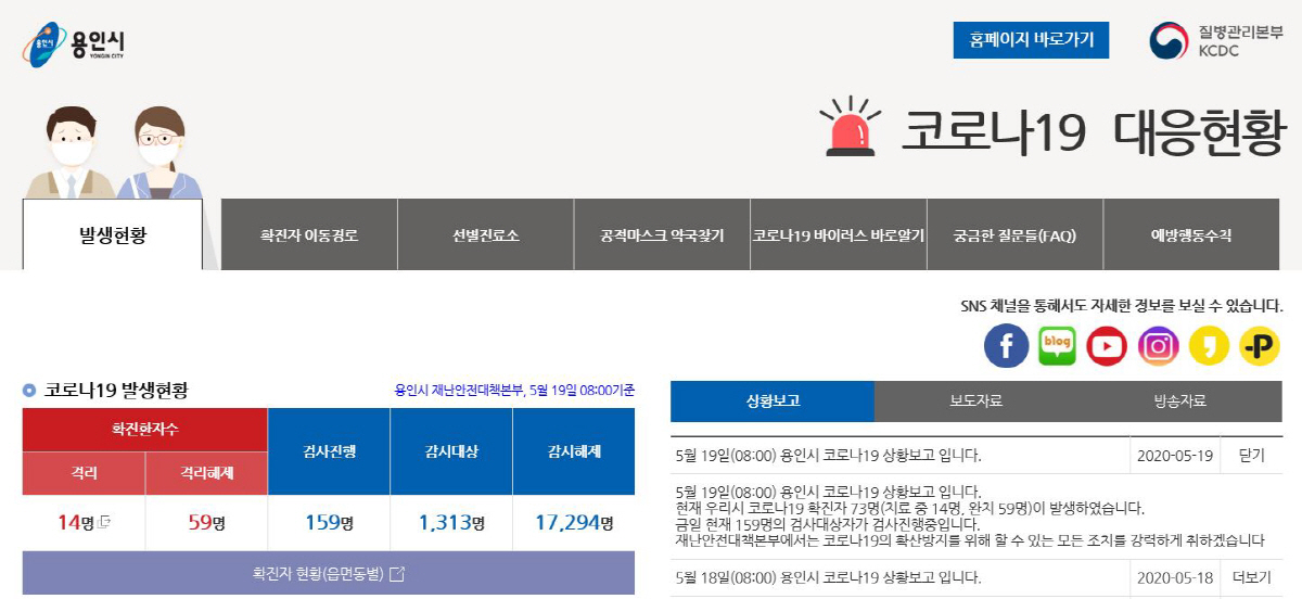 용인시는 72번, 73번 확진자의 세부동선과 접촉자를 확인하기 위해 역학조사를 진행 중이다.