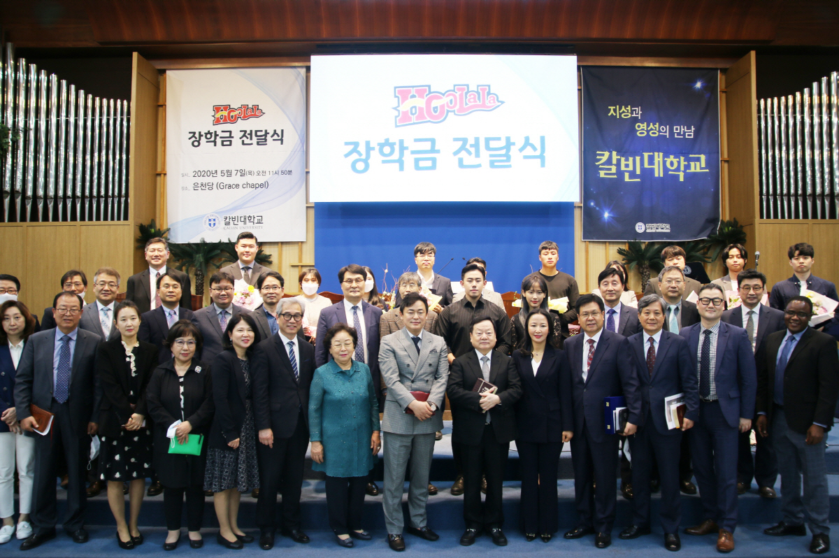 훌랄라가 지난 7일 경기도 용인시 소재 칼빈대학교 학생 10명에게 장학금을 전달, 훌랄라홀' 지정 기념 커팅식을 진행했다고 20일 밝혔다.