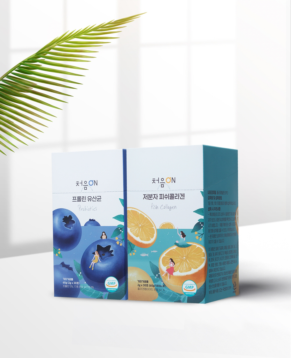'처음온 저분자 피쉬콜라겐'은 건조한 사무 환경에 장시간 노출된 여성 직장인을 위한 제품으로, 저분자 피쉬콜라겐 1320㎎을 비롯해 히알루론산, 콜라겐 합성에 필수적인 비타민C 등이 함유되어 있다. 저분자 피쉬콜라겐은 동물성 콜라겐보다 분자량(Da)이 작아 상대적으로 흡수율이 좋다고 알려져 있다.
