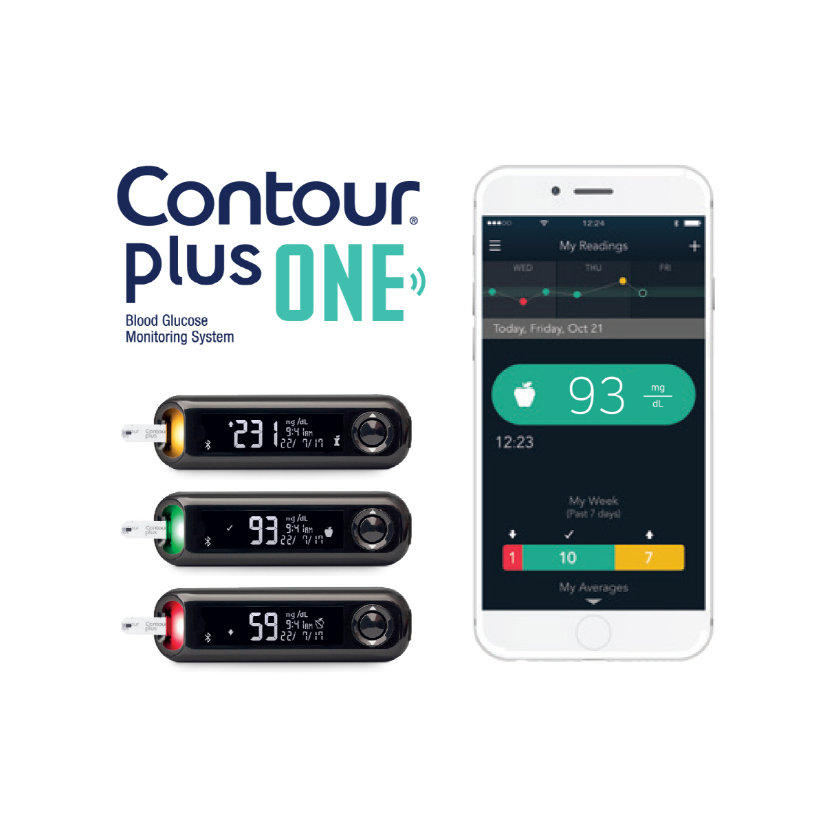 이와 더불어 '컨투어플러스 원'과 블루투스로 연동할 수 있는 '컨투어 다이아비티즈(Contour diabetes)' 모바일 앱도 출시했다. 안드로이드와 IOS 운영체제 기기에서 모두 사용할 수 있으며, 사용자의 혈당 수치를 최대 90일까지 자동 전송할 수 있다. 혈당 측정 기능 외에도 메모, 미리 알림, 공유 기능 등이 탑재되어 있고, 운동량 측정, 약물 변경사항 알림 등의 기능도 활용할 수 있다.