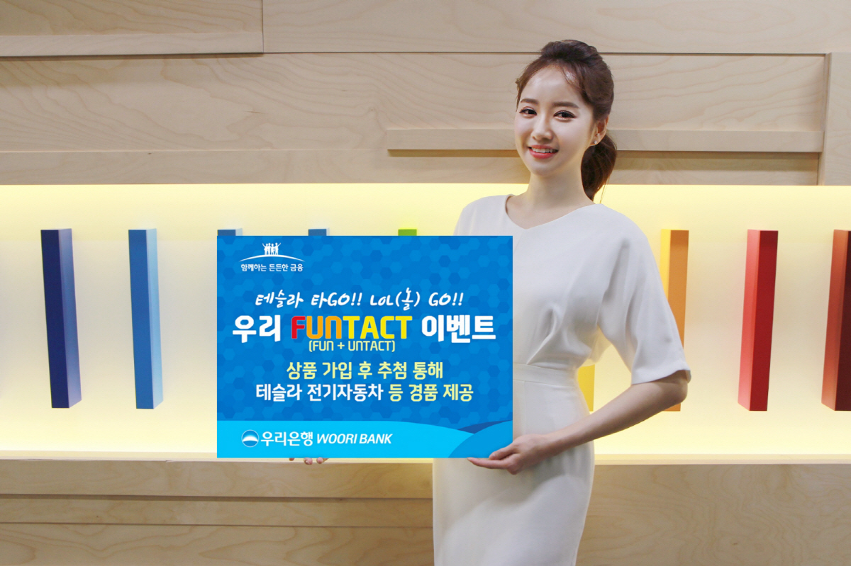 우리은행은 오는 9월 30일까지 '우리 FUNTACT 테슬라 타GO, LoL(놀) GO'이벤트를 실시한다고 12일 밝혔다.