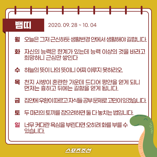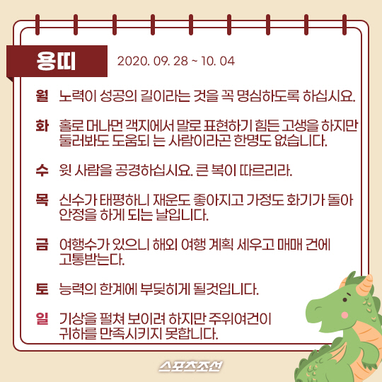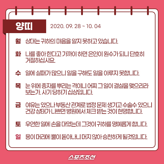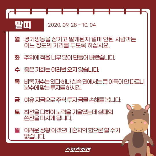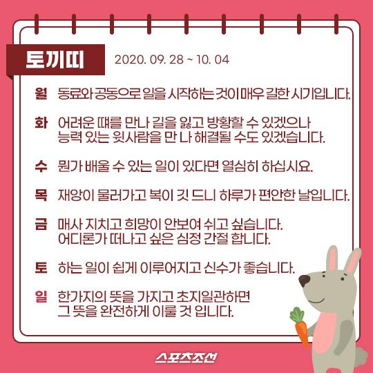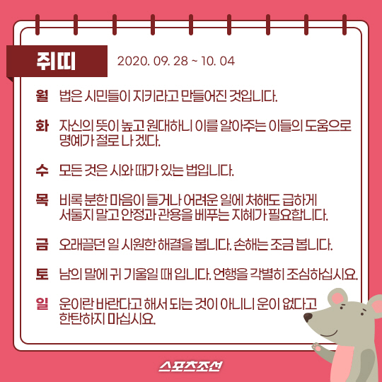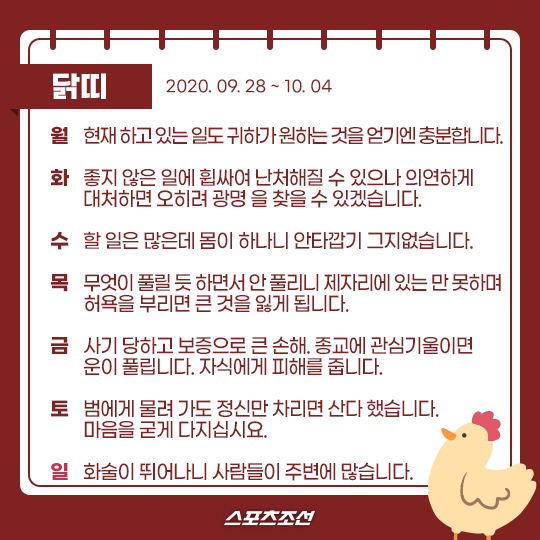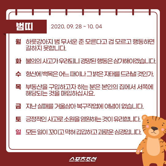 [카드뉴스] 9월 다섯째주 주간 띠별 운세