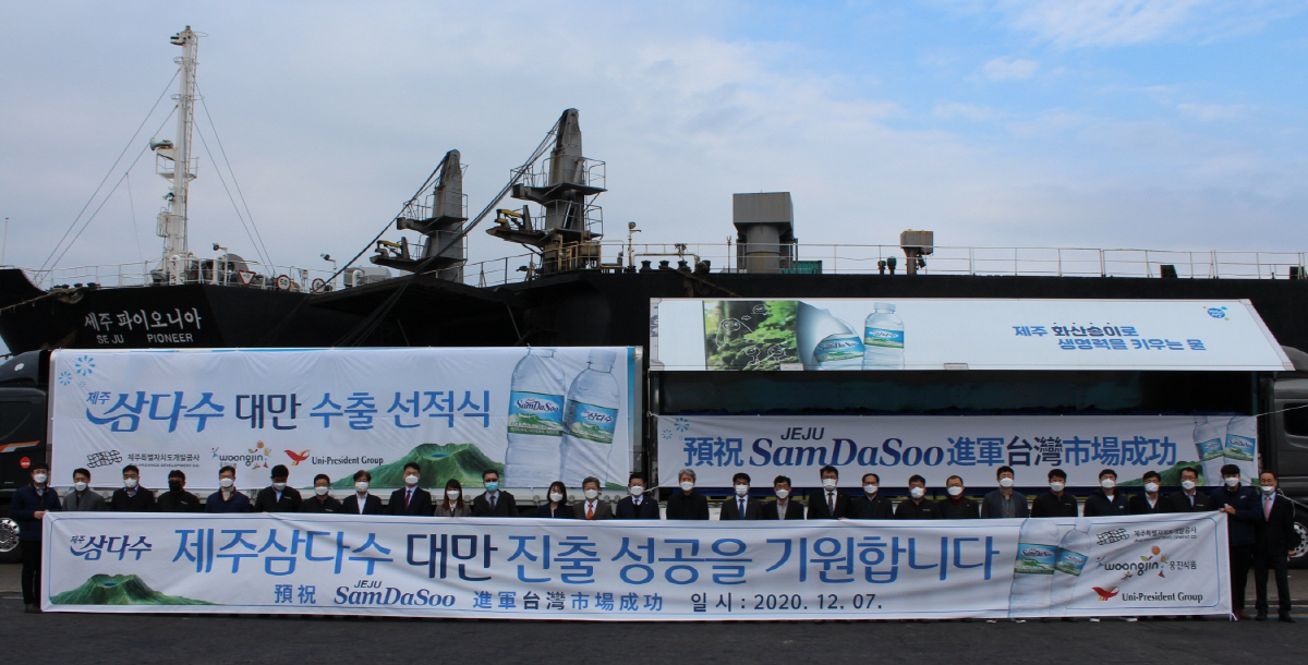 제주특별자치도개발공사가 지난 7일 제주항에서 제주삼다수 대만 수출을 위한 선적식 행사를 진행하고 대만 시장 진출을 공식화했다.