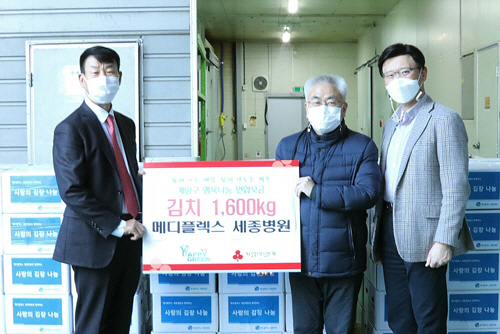 메디플렉스 세종병원 자문위원회는 8일 계양구청에 김장김치 1600㎏(160박스)를, 탈북민 단체에 김장김치 300㎏(30박스)를 각각 기탁했다.