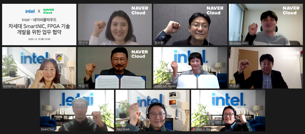 네이버클라우드와 글로벌 IT 기업 인텔이 차세대 스마트닉(SmartNIC) 및 스토리지 네트워크 가속화 연구와 개발을 위한 업무협약(MOU)을 체결했다고 14일 밝혔다. 네이버클라우드는 인텔의 프로그래머블 반도체(FPGA)를 적용한 스마트닉을 자체 개발, 국내 클라우드 사업자 중 유일하게 FPGA가 적용된 고성능 서버를 제공하고 있다. FPGA는 프로그래밍으로 기능을 변경할 수 있는 비메모리 반도체의 일종이다. 일반적인 주문형 반도체(AISC)는 기능 업데이트가 필요하지만 FPGA는 하드웨어를 교체하지 않고도 기능을 수정하거나 추가할 수 있는 게 특징이다 .