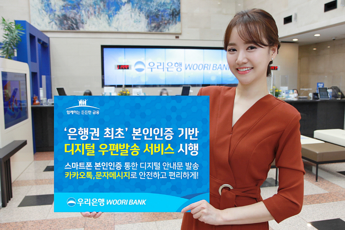 우리은행은 15일부터 시중은행 최초로 '본인인증기반 디지털우편발송(모바일 전자고지) 서비스'를 시행한다고 밝혔다.