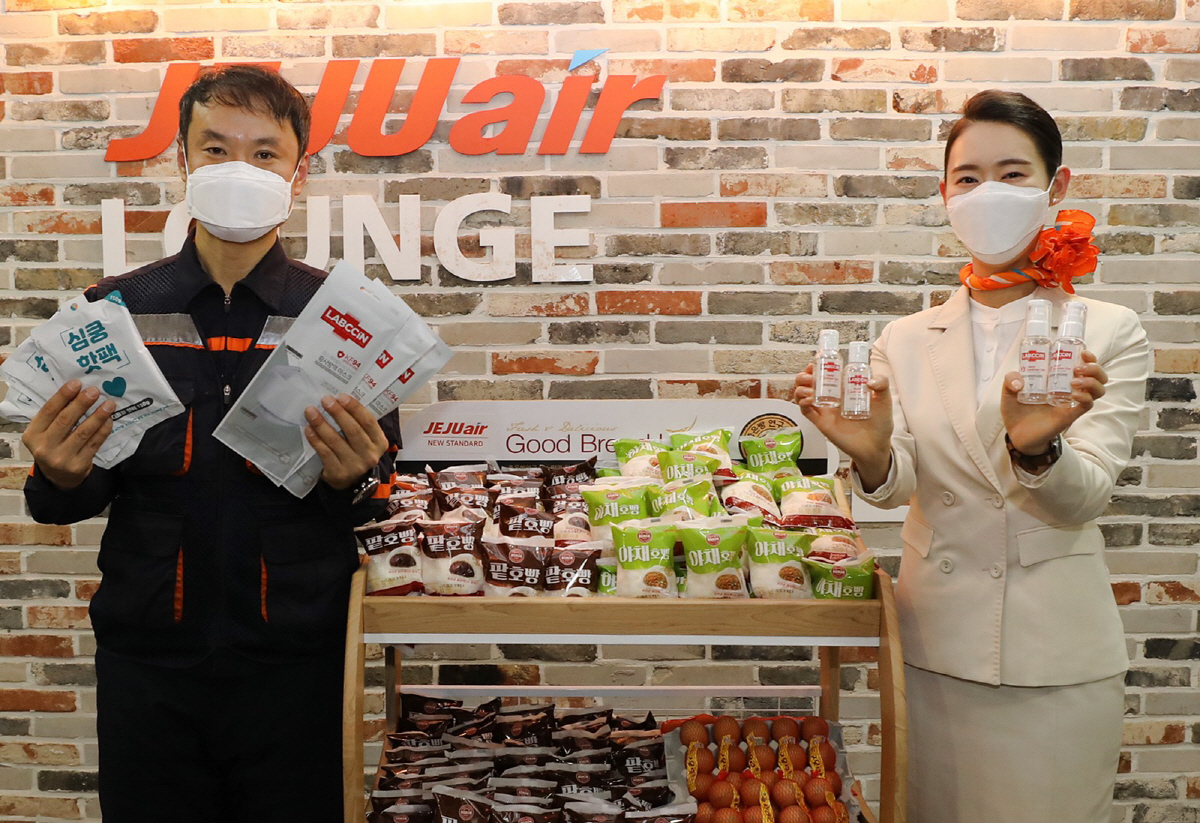 제주항공은 지난 2016년부터 5년째 임직원을 대상으로 여름에는 아이스크림, 겨울에는 호빵 등 간식을 제공하고 있다. 올해는 현장근무 직원을 위해 애경 '랩신' 마스크와 손소독제를 추가적으로 제공했다.