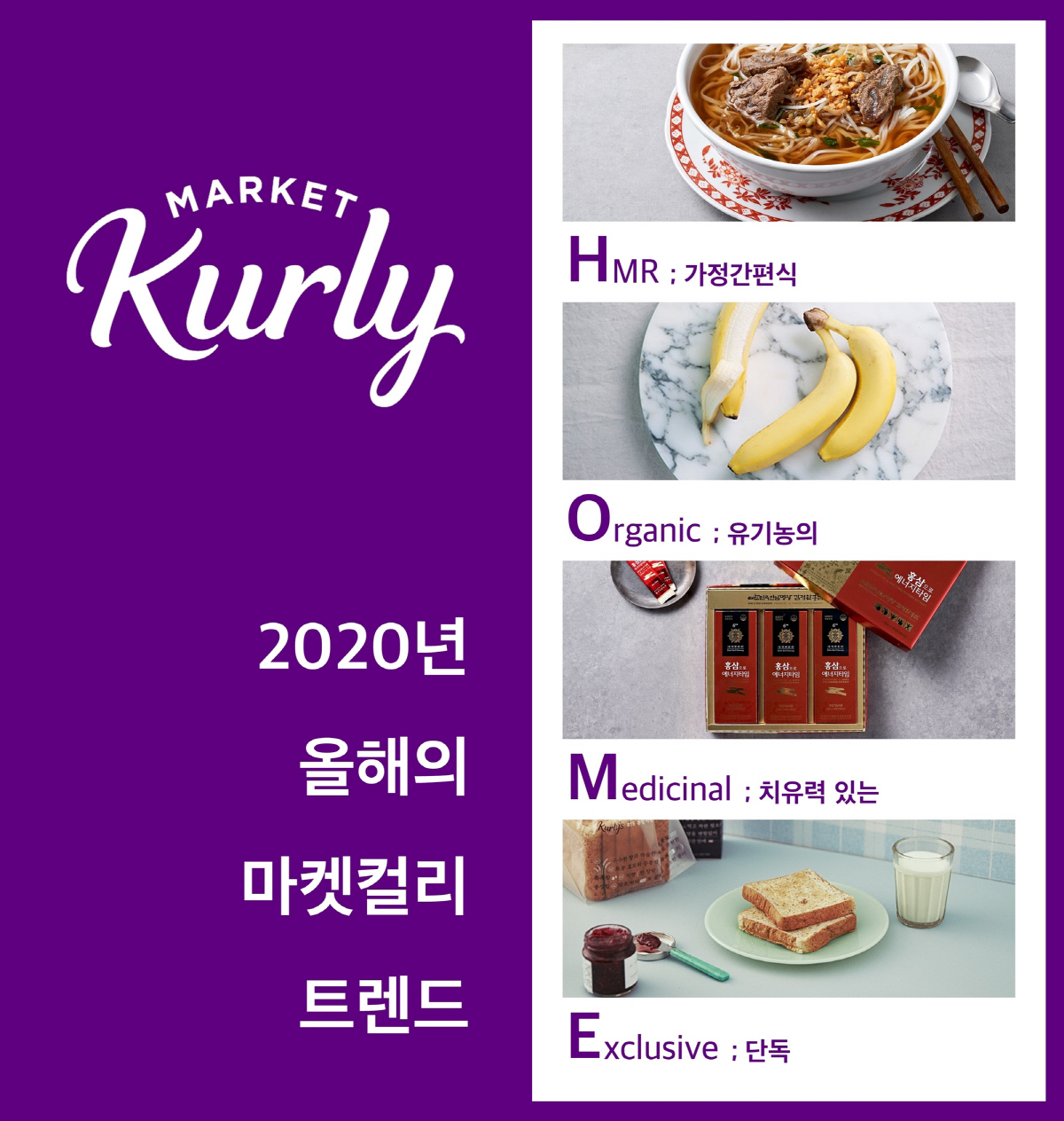 올해는 코로나 19로 인해 사회가 전반적으로 크게 바뀌었는데, 그중에서도 식생활, 소비패턴 등 기본적인 라이프스타일에 많은 변화가 생겼다. 2020년을 마무리하며 마켓컬리가 꼽은 올해의 트렌드는 'H.O.M.E'으로 HMR(가정간편식), Organic(유기농), Medicinal(치유력 있는), Exclusive(단독)의 앞글자를 딴 것이다.