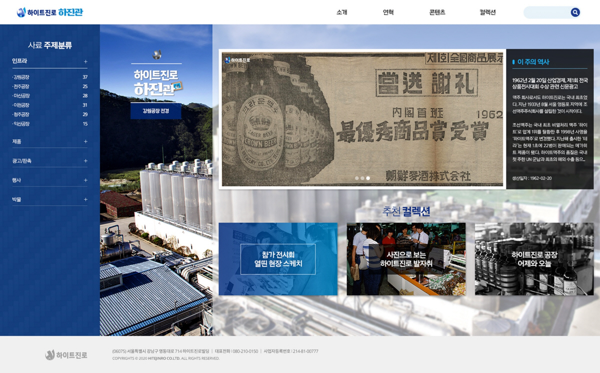 또 하이트진로는 소통경영의 일환으로 100주년 준비를 위한 디지털 역사관을 오픈한다. 사내외에 흩어져있는 100년 역사의 기록을 디지털화해 보관·열람하기 위해 기획하게 됐다. 설립일인 1924년부터 현재까지의 공장, 사옥, 제품, 광고, 홍보영화 등 각종 영상, 대내외 행사, 사사/사보 및 출판물 등 기록물을 등 6만 여건의 자료가 저장될 예정이다.