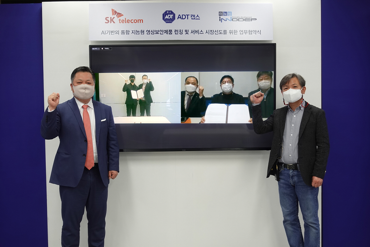 SK텔레콤이 국내 대표 보안기업인 ADT캡스, 국내 통합관제센터 선도기업인 이노뎁과 함께 'AI기반 지능형 영상분석 솔루션 사업화'를 위한 3사 협약을 체결했다고 17일 밝혔다. 협약은 공공(범죄예방, 교통, 재난대응 등)과 민간(스마트 팩토리, 스마트 물류센터 등) 영역에서 안전과 보안강화를 목적으로 CCTV 설치가 급증하고 있는 상황에서, 이에 대한 효율적인 관제와 선제적 대응을 위한 지능형 영상분석 서비스 출시 요구가 늘고 있는데 따른 조치로 향후 AI기반 영상분석 시장을 선도하기 위한 일환에서 진행됐다.