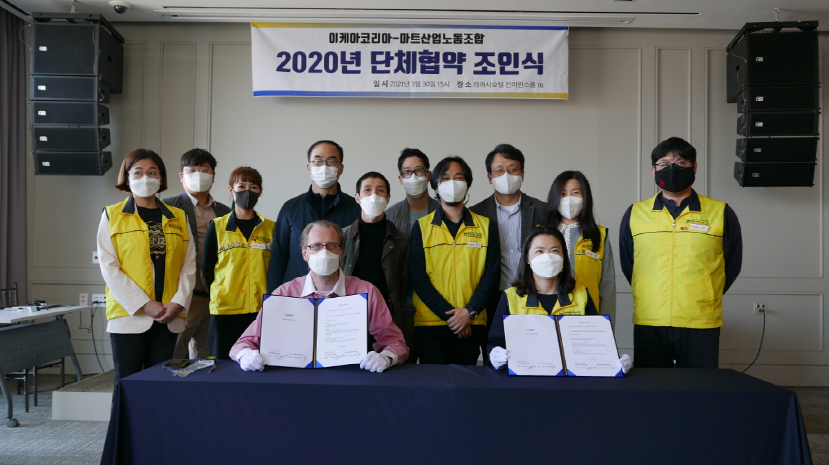 이케아 코리아는 이날 프레드릭 요한손 이케아 코리아 대표, 민주노총 서비스연맹 마트산업노동조합 위원장 등 노사 교섭위원들이 참석해 단체협약 체결 조인식을 진행했다. 이번 단체협약 체결은 2020년 5월 노조의 최초 교섭 요구 이후 약 11개월간 총 30여 번 이상의 교섭을 거치며 노사가 최종 합의점에 이른 성과다.