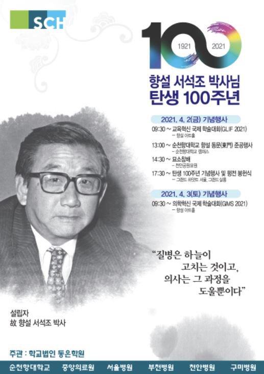 1974년 우리나라 의료법인 1호로 개원한 순천향병원은 하늘의 이치에 따라 인술로 인간을 이롭게 하고 널리 구제한다는 광제인술과 인간사랑의 철학을 담고 있다.