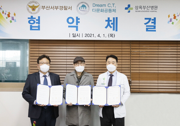 삼육부산병원은 1일 부산 서부경찰서, Dream C T 다문화공동체와 함께 서구 지역 외국인·다문화 가정을 대상으로 적극적인 의료지원을 위해 업무협약(MOU)을 체결했다.