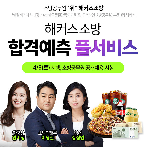 또한, 오늘 실시간으로 스타 강사진의 과목별 해설강의도 제공할 예정이다. 소방학개론 이영철, 소방 한국사 연미정, 소방 영어 김정연, 소방관계법규 김진성, 소방 국어 최정 등 해커스소방 스타 강사진이 해설 특강을 진행해 소방 시험에 대해 빠르게 분석해준다.