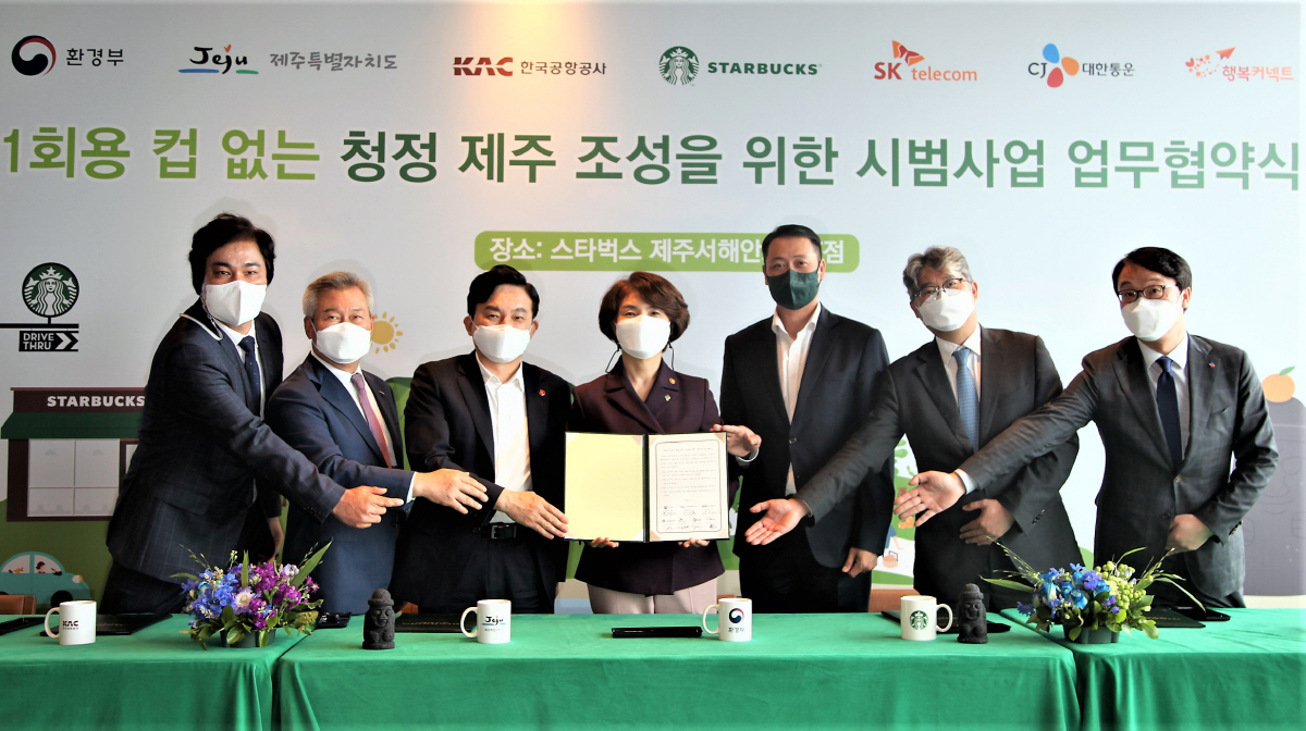 이번 협약식을 통해 향후 환경부와 제주특별자치도, 한국공항공사는 관련한 정책 및 행정 사항 등을 적극적으로 지원하고, 스타벅스, SK텔레콤, CJ 대한통운은 제주 지역 내 다회용컵 사용 매장 확대 및 관련 캠페인 전개 등의 일회용컵 줄이기 환경 조성에 적극적으로 동참하기로 했다.