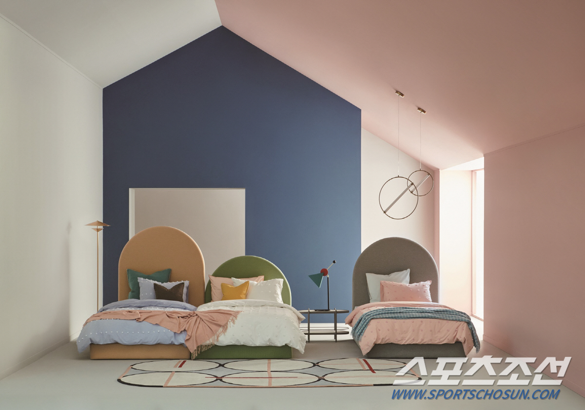 또 다른 신제품 '라토(Lato)'는 심플한 곡선과 파스텔톤 컬러의 조화가 어우러지는 프레임이다. 색상 별 헤드보드 높이가 달라 사용자에 따라 다양한 배치가 가능하다. 특히 패브릭 소재로 이뤄진 곡선 형태 프레임이 자녀들의 부딪힘을 최소화한다.