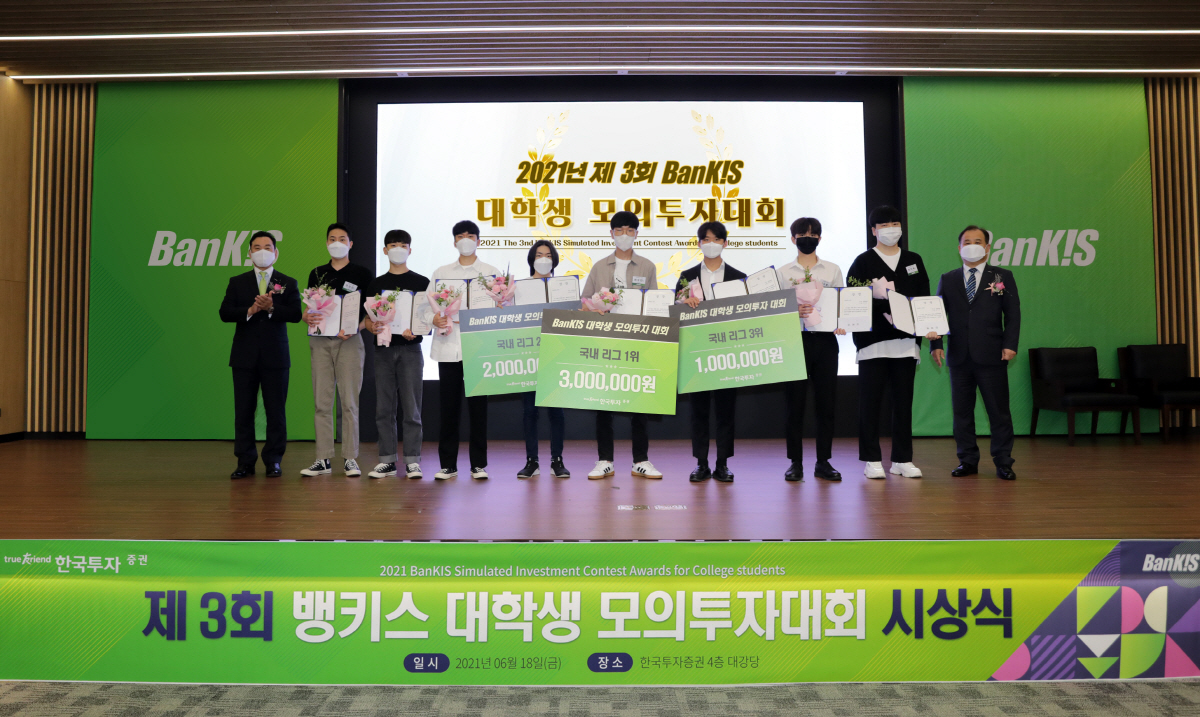 한국투자증권은 지난 18일 서울 여의도 본사에서 '제3회 뱅키스(BanKIS) 대학생 모의투자대회' 시상식을 개최했다고 밝혔다.