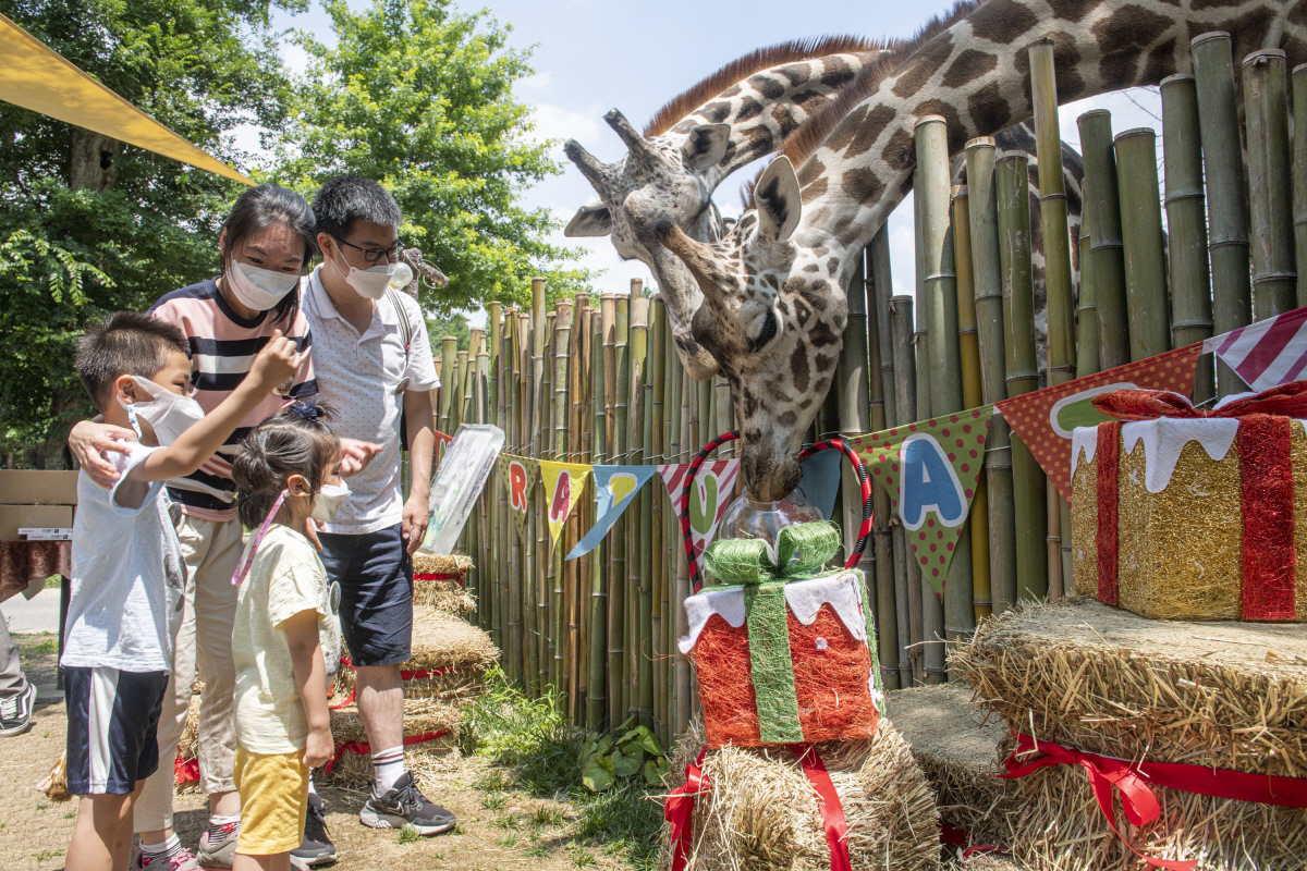 로스트밸리 기린 방사장에서 진행된 이날 행사에서는 '세계 기린의 날' 의미 설명과 함께 고객들이 직접 구멍이 뚫린 피딩볼(먹이상자)을 만들어 매달아 주는 등 기린의 목과 혀 근육 발달에 도움을 주는 다양한 인리치먼트(행동풍부화) 프로그램이 진행됐다.