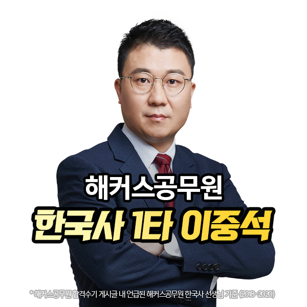 이에 공무원 학원 강의 및 공무원 인강을 제공하는 해커스공무원이 한국사 1위 이중석 강사의 합격 전략을 공개했다.