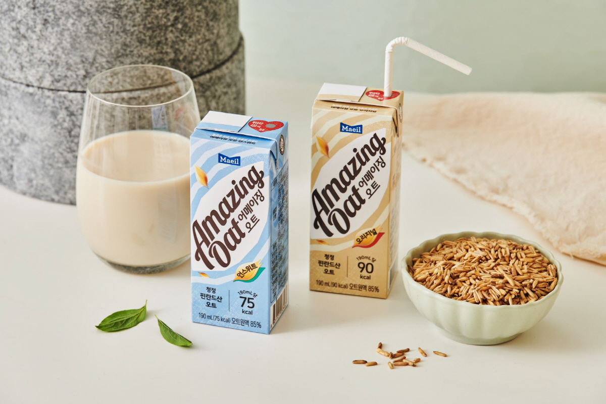 어메이징 오트는 통곡물 오트(귀리)를 껍질째 그대로 갈아 만든 식물성 음료다. 매일유업은 100% 청정 핀란드산 오트만을 사용, 맷돌 방식으로 세 번 갈아 부드러운 맛을 구현하기 위해 노력했다.