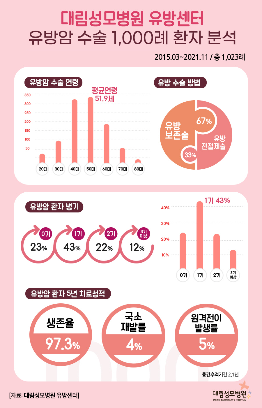 대림성모병원이 유방센터 개소 6년 만에 유방암 수술 1000례 달성을 계기로 환자 추적 관찰 결과를 발표했다.