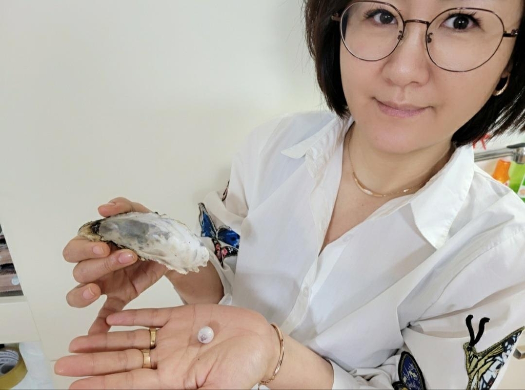 그는 "남편과 둘이 70개 정도 되는 굴찜을 하나하나 까먹던 중 무심코 집은 한 석화의 껍질을 벌리자 진주가 나타났다"며 "둥근 모양의 하얀 바탕에 보라색이 섞여 있어 이쁘고 신비했다"고 말했다.