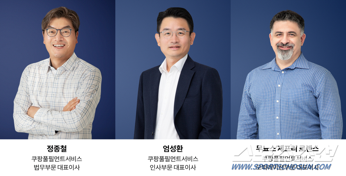 엄성환 쿠팡풀필먼트서비스 인사부문 대표이사는 이십여 년간 채용, 인재양성, 조직개발 등 인사 전반에 걸쳐 다양한 경험을 쌓은 전문가로서 2015년 쿠팡에 합류해 2018년부터 쿠팡풀필먼트서비스의 인사부문 총괄 리더로 근무해왔다. 쿠팡 입사 전에는 2006년부터 2015년까지 잡코리아에서 HR 매니저로 재직했다. 무뇨스 제프리 로렌스 오퍼레이션부문 대표이사는 2018년 쿠팡에 합류해 2019년 9월부터 물류 오퍼레이션 총괄 리더를 맡아왔다. 쿠팡 입사 전에는 글로벌 기업 아마존에서 10년 넘게 다양한 직책을 역임했고 오퍼레이션 관련 경력이 주를 이룬다. 정종철 대표이사는 쿠팡풀필먼트서비스의 기업법무 전반을 담당하는 것은 물론 컴플라이언스 및 업무환경, 안전 등 ESG 경영 강화를 위한 법률 지원 업무에 집중할 예정이다. 정 대표는 서울지방법원 판사를 거쳐 2001년부터 직전까지 김앤장 법률사무소에서 기업법률 변호사로 활동하며 기업의 경쟁력 제고와 기업문화 변화관리 등 다양한 프로젝트를 담당해 왔다.