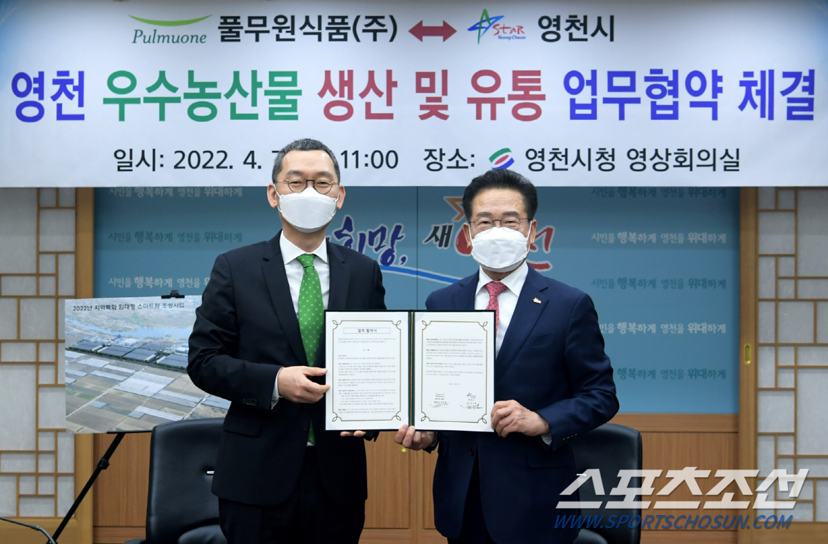 풀무원식품 김진홍 대표는 "미래형 농업인 스마트팜 생산 기반을 구축한 영천시와의 협약을 통해 기상이변과 고령화로 어려움을 겪는 지역 농업 문제 해결에 앞장설 것"이라며 "지속가능 농업과 농촌과의 상생을 위해 지속해서 노력하겠다"고 말했다.전상희 기자 nowater@sportschosun.com